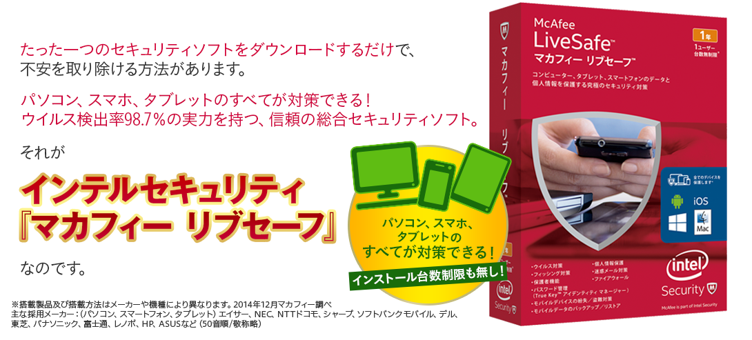 インテルセキュリティ『マカフィー リブセーフ』は、